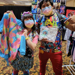 Sin City Anime had a WONDERFUL line up of fashion guests which offered a little bit of everything for everyone! Japan's beautiful shironuri artist Minori's intricate handmade jewelry, accessories and outfits. Cybr.grl's brand CANDY TRAP that is an absolute explosion of colour and cheer. And of course, GHOST GiRL GOODS bringing all the hype energy with our cool and cute streetwear.